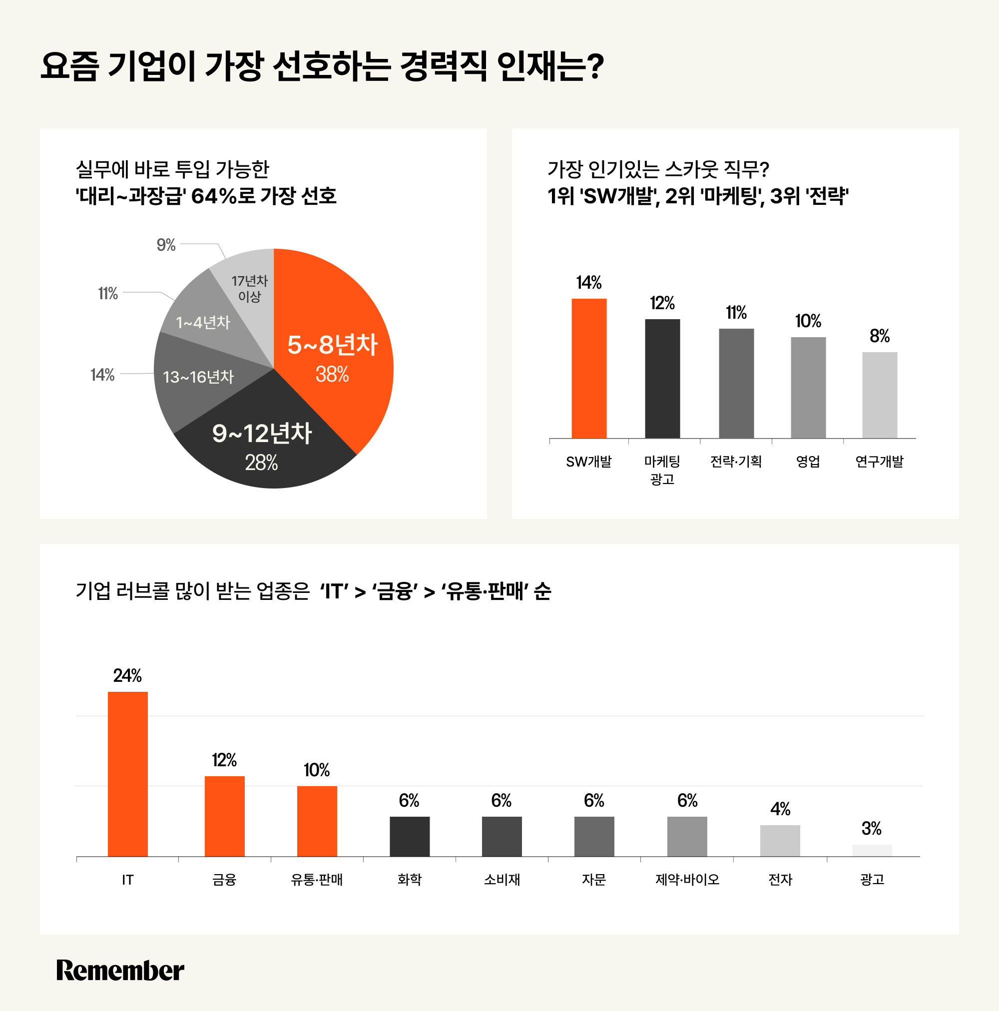 리멤버 스카우트 제안 데이터 공개, 요즘 대세 경력직 인재는 누구?