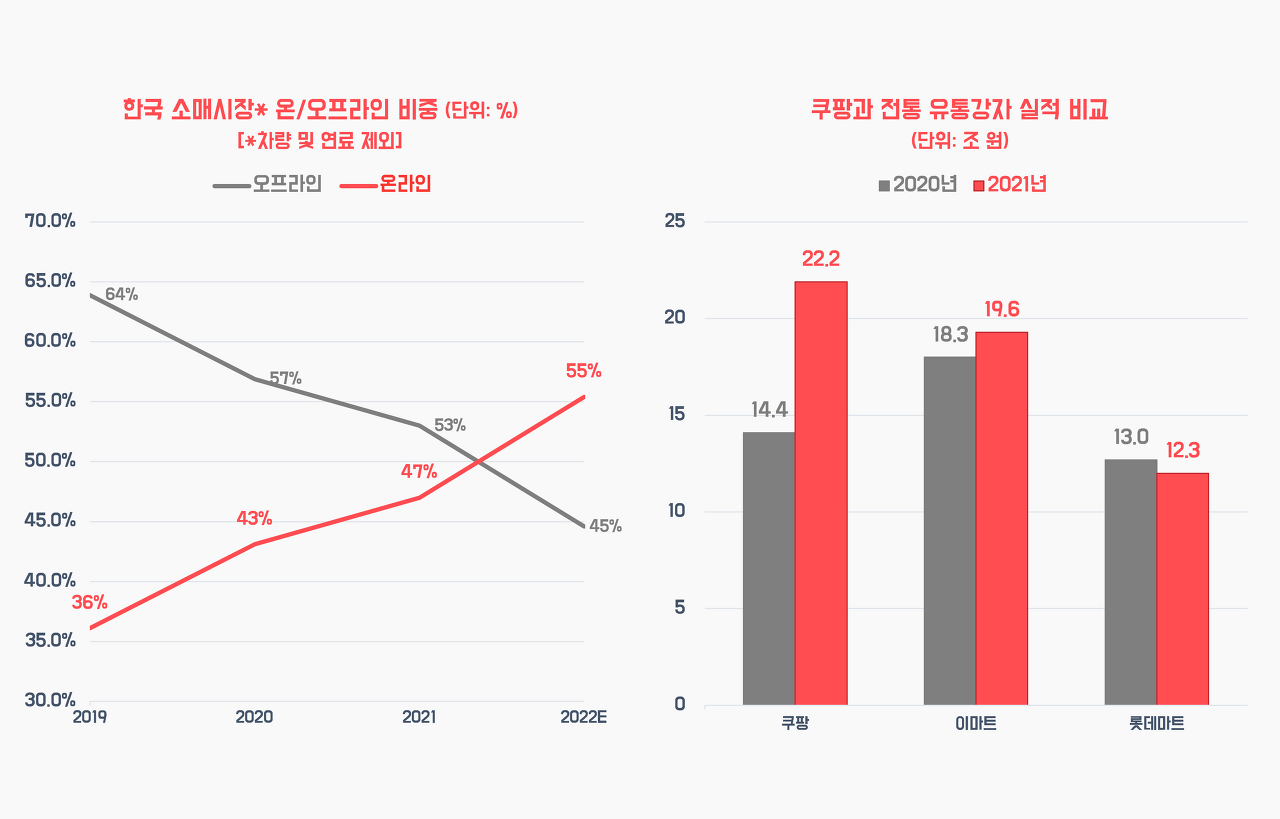 과거의 이마트는 맘만 먹으면 가격을 원하는 대로 통제할 수 있었지만요. 지금은 이처럼 쿠팡과의 가격 경쟁에서 승리를 장담할 수 없게 되었습니다.
