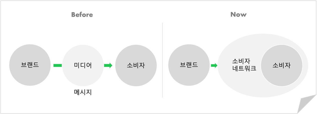 브랜딩의 위기와 기회는 결국 미디어의 변화로부터 발생했습니다. 이 변화의 핵심은 미디어의 주체가 브랜드에서 소비자 중심으로 옮겨졌다는 것이죠.