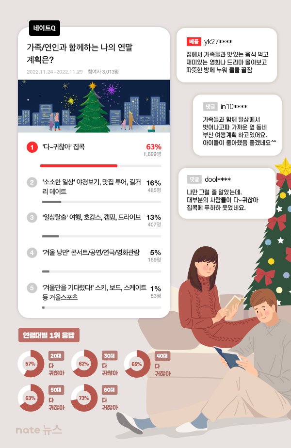 네이트 이용자 연말 계획 설문 결과… “63% ‘집콕’으로 조용히 보낼래요”