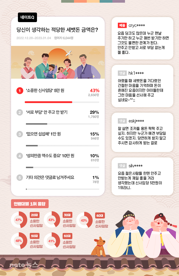 네이트 이용자 6044명 대상 적정 세뱃돈 금액 설문조사, 43% ‘5만원’