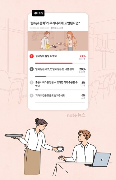 네이트 Q 설문 결과… 아직 낯선 팁 문화, 73% ‘절대 받아들일 수 없다’