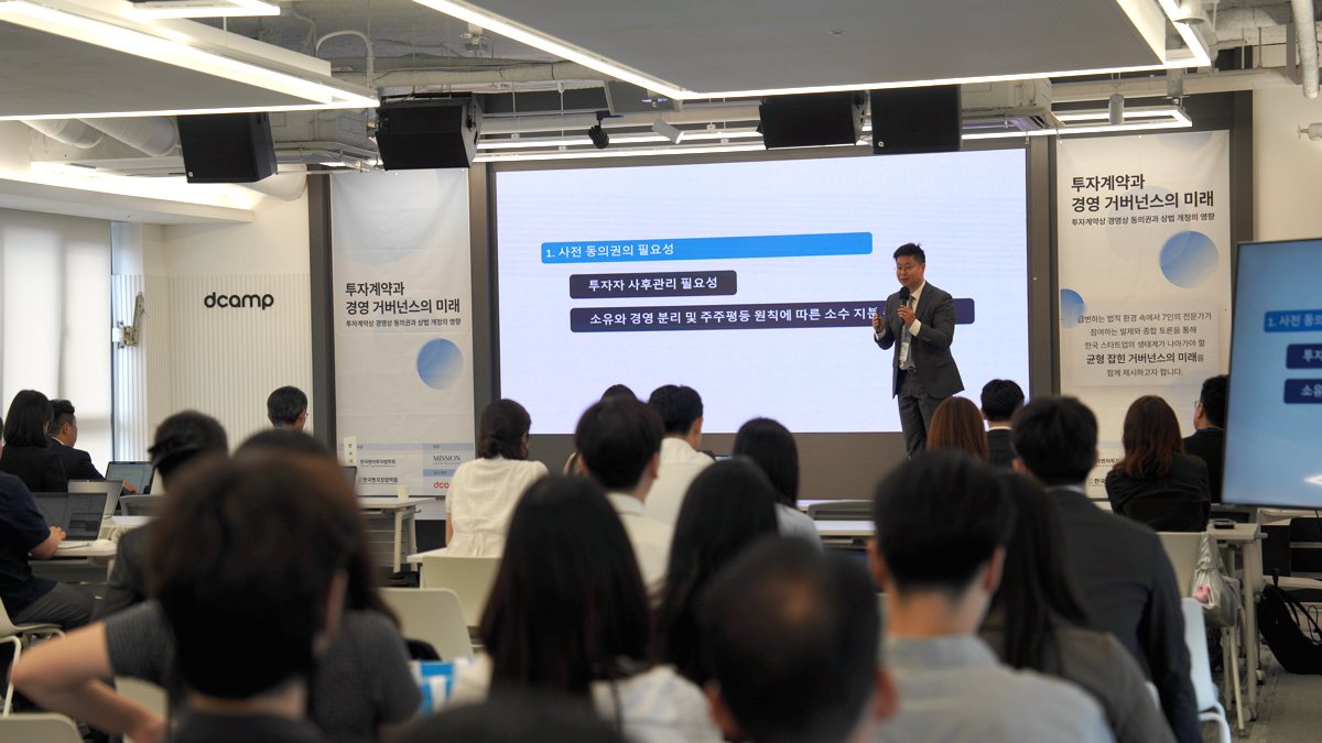최근 기업의 지배구조와 주주권 보호를 강화하는 내용을 골자로 한 1·2차 상법 개정안이 모두 국회를 통과했다. 이사의 충실 의무 대상은 더 이상 ‘회사’만이 아닌 ‘회사 및 주주’로 확대되며 주주의 이익을 보호하는 근거가 마련됐다. 또 집중투표제 및 감사위원 분리선출 확대를 통해 대주주의 이사회 독식구조를 견제하고 일반주주의 권익을 강화하는 내용이 추가됐다. 더불어 자사주 소각 의무화 등을 담은 3차 상법 개정안도 예고되고 있다. 이에 한국벤처투자법학회와 한국벤처창업학회는 지난 18일 ‘투자계약과 경영 거버넌스의 미래’를 주제로한 세미나를 공동 개최하며 법조계와 스타트업 생태계 관계자들의 의견을 공유하는 자리를 가졌다.
