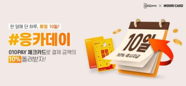 세틀뱅크는 010PAY 체크카드 이용 고객을 대상으로 응카데이를 개최한다고 8일 밝혔다. 응카데이는 이벤트가 진행되는 하루 동안 010PAY 체크카드로 결제한 금액의 10%(최대...
