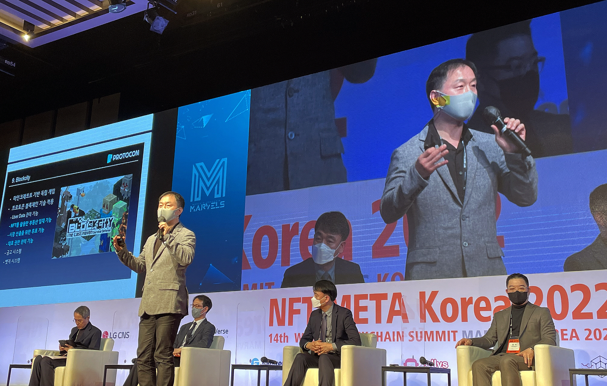 토종 메인넷 프로젝트로 기대를 모으고 있는 프로토콘이 그랜드 인터컨티넨탈 서울 파르나스에서 열린 'NFT META Korea 2022' 행사에서 자사의 블록시티(Blockcity) 게임을...