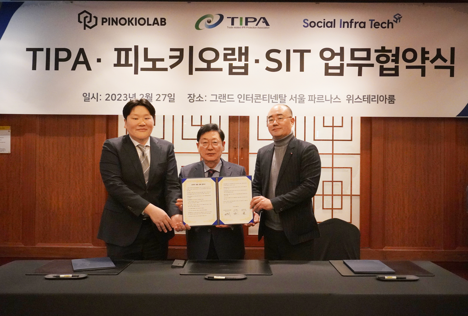 블록체인 솔루션 전문 기업인 소셜인프라테크가 블록체인 기술 공급을 통해 무역관련지식재산권보호협회(이하 TIPA), 피노키오랩과 함께 3자 협약을 체결하고 가품 퇴출을 위한 DID...