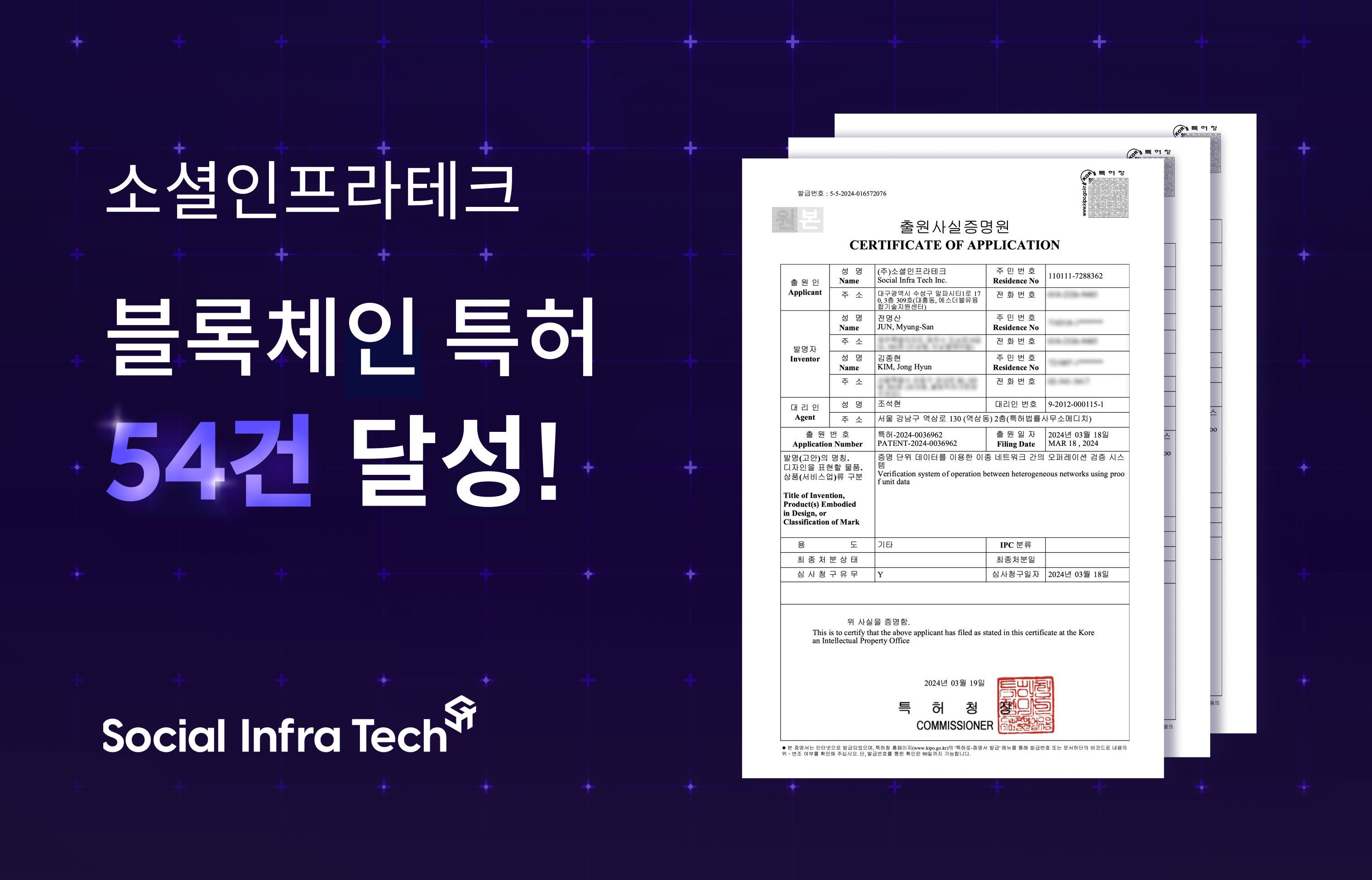 소셜인프라테크, 블록체인 특허 54건 달성…메인넷 기술 경쟁력 강화