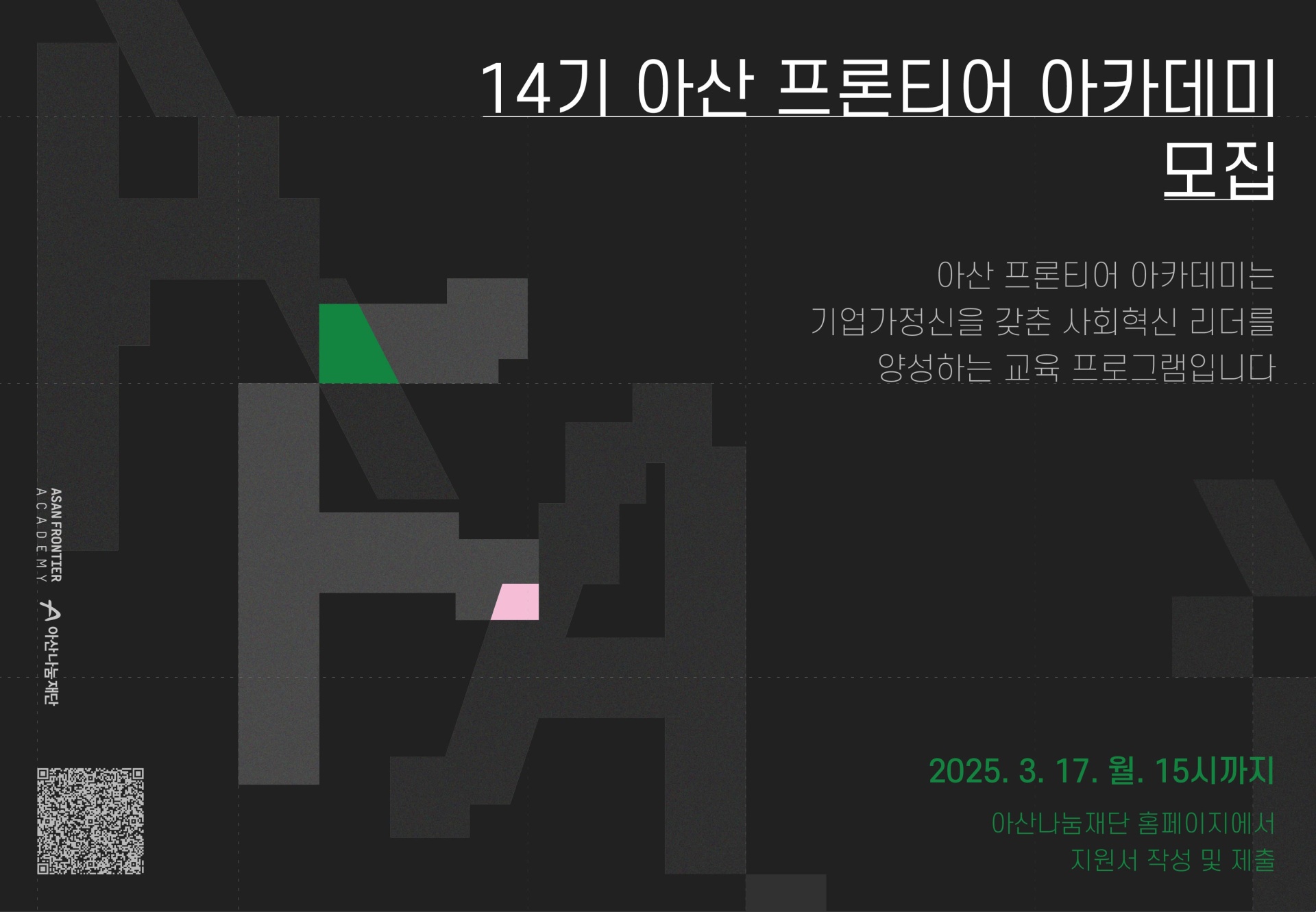 아산나눔재단은 차세대 소셜섹터 리더를 양성하는 교육 프로그램 ‘아산 프론티어 아카데미’의 14기 수강생을 모집한다고 11일 밝혔다. 내달 17일까지 모집하는 아산 프론티어...