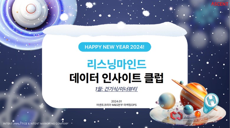 검색 빅데이터 분석 기반 마케팅 테크(MarTech) 기업 어센트코리아는 ‘건기식·이너뷰티’를 주제로 ‘리스닝마인드 인텐트 데이터 인사이트 리포트’ 1월호를 공개했다고 16일 밝혔다. 어센트코리아는...