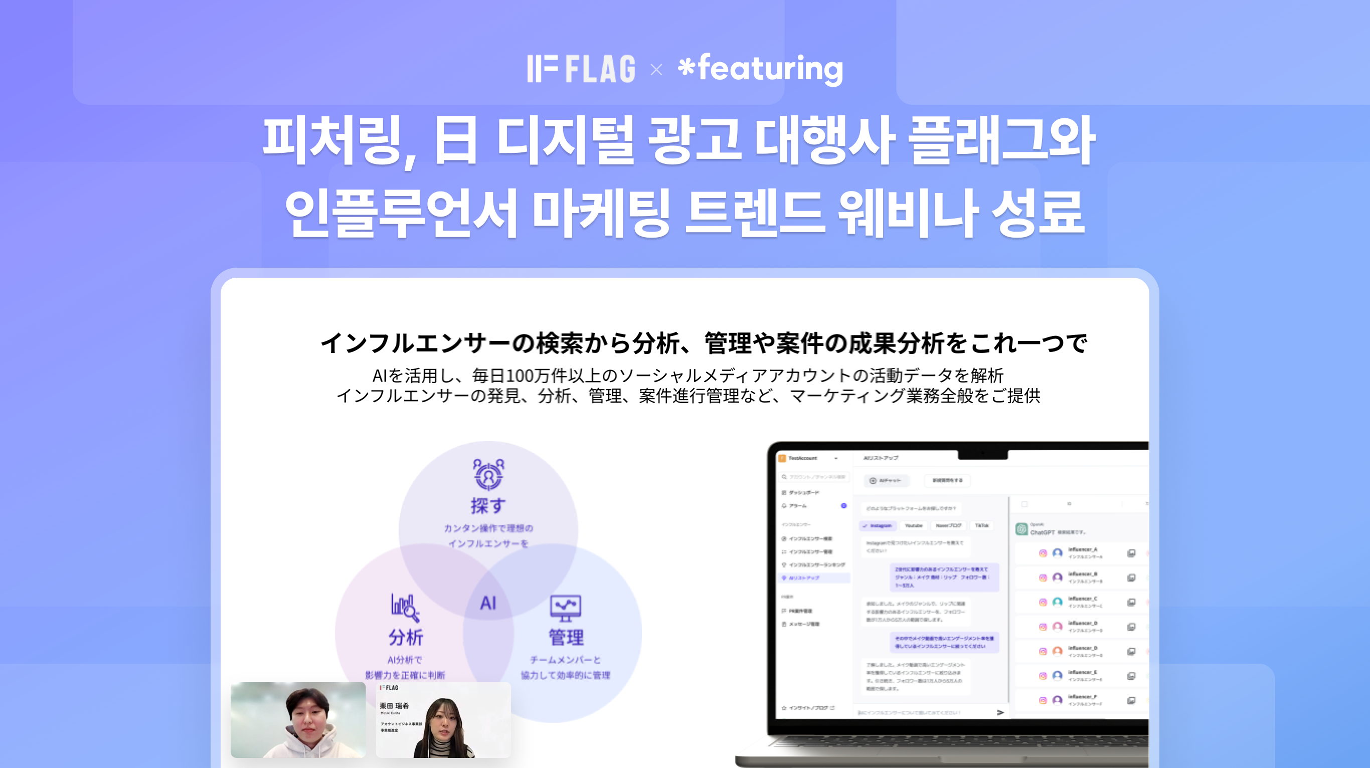 피처링, 日 디지털광고대행사 플래그와 인플루언서 마케팅 트렌드 웨비나 성공적