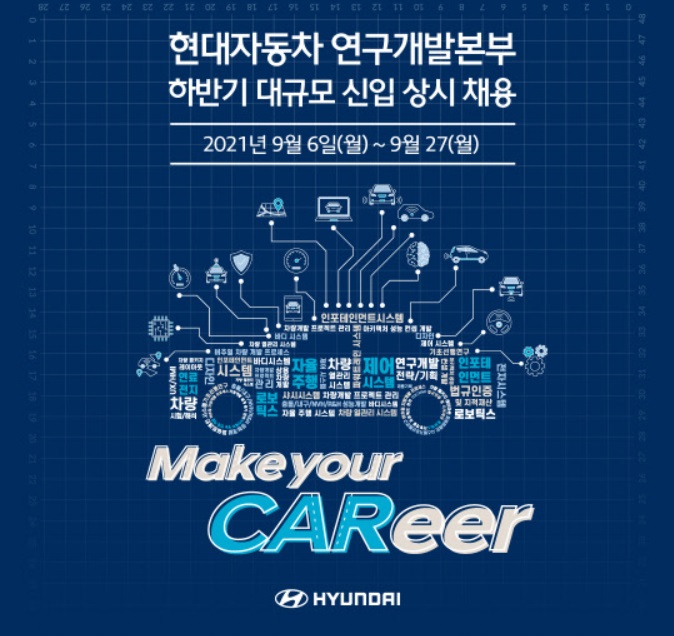 현대자동차는 6일부터 27일까지 3주 간 ‘현대차 채용 홈페이지를 통해 연구개발본부 신입 채용을 시작한다. 현대차는 급변하는 자동차 산업의 변화 속에서 연구개발...