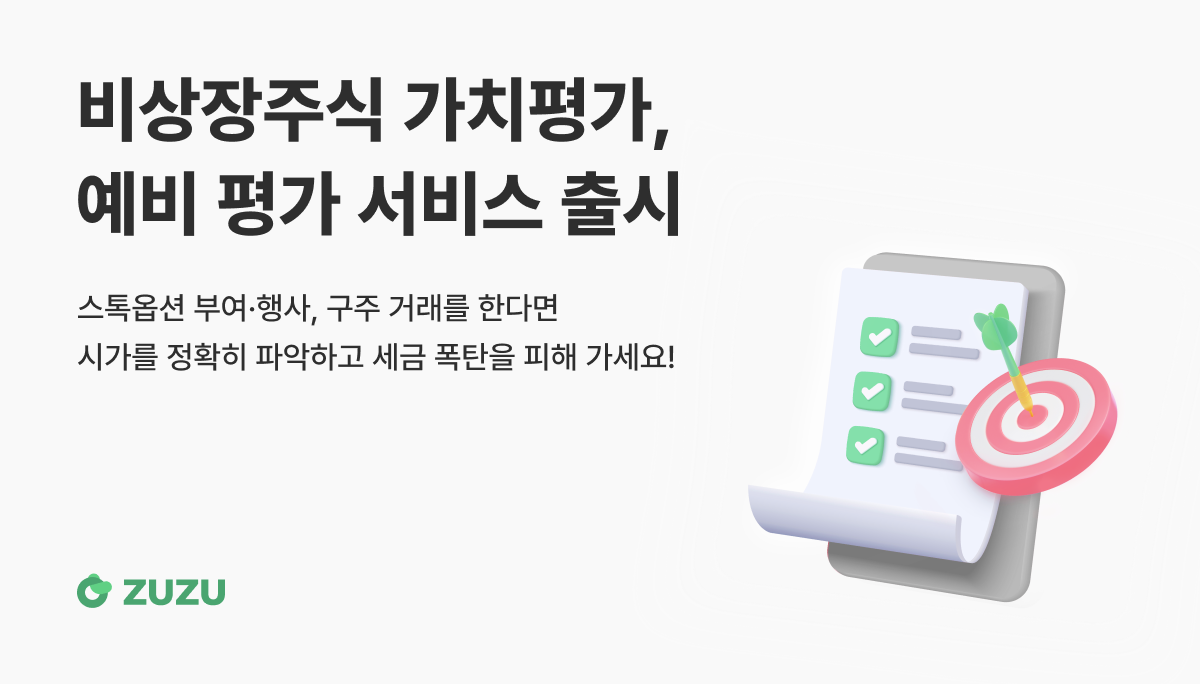 스타트업 주주 관리 서비스 주주(ZUZU)는 13일 비상장주식 가치평가 서비스를 출시했다고 밝혔다. ‘ZUZU 가치평가’는 전문 세무회계 파트너사와 협력해 주식 양수도, 증여,...