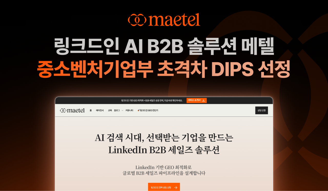 지난 2024년 설립된 메텔은 LinkedIn 기반 데이터를 활용해 B2B 세일즈 파이프라인을 구축하는 솔루션을 제공하고 있다. 특히 GEO(Generative Engine Optimization)와 AI 검색 최적화 기술을 결합해 해외 바이어 발굴과 아웃리치 전략을 동시에 설계하는 것이 특징이다.