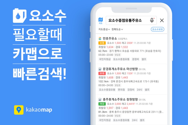 카카오맵, 요소수 중점 유통 주유소 '재고 및 가격 정보' 추가
