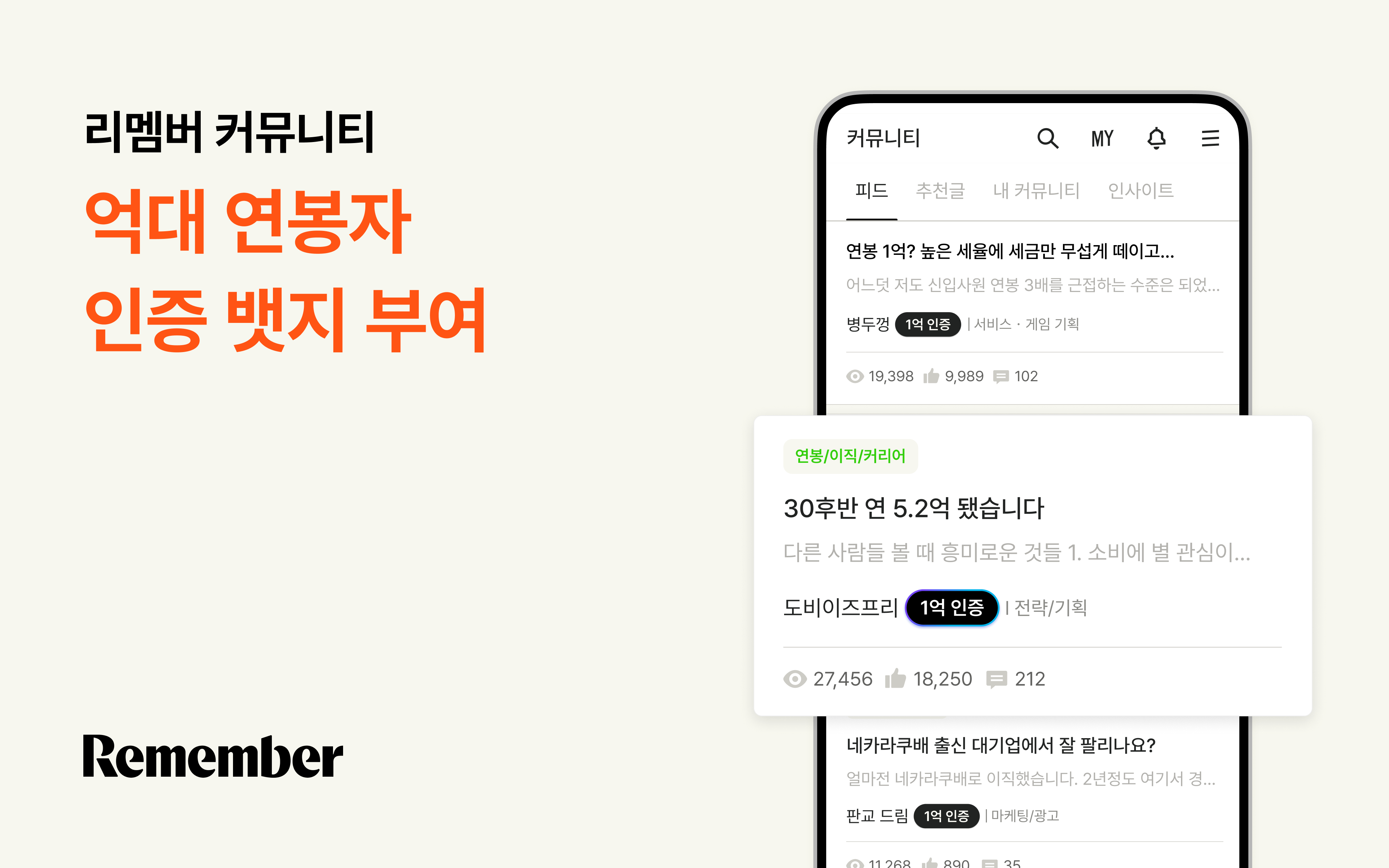 리멤버 커뮤니티, ‘억대 연봉자 인증 뱃지’ 부여