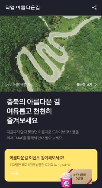 충북 드라이브도 티맵…’아름다운길’ 보고 경품도 챙긴다