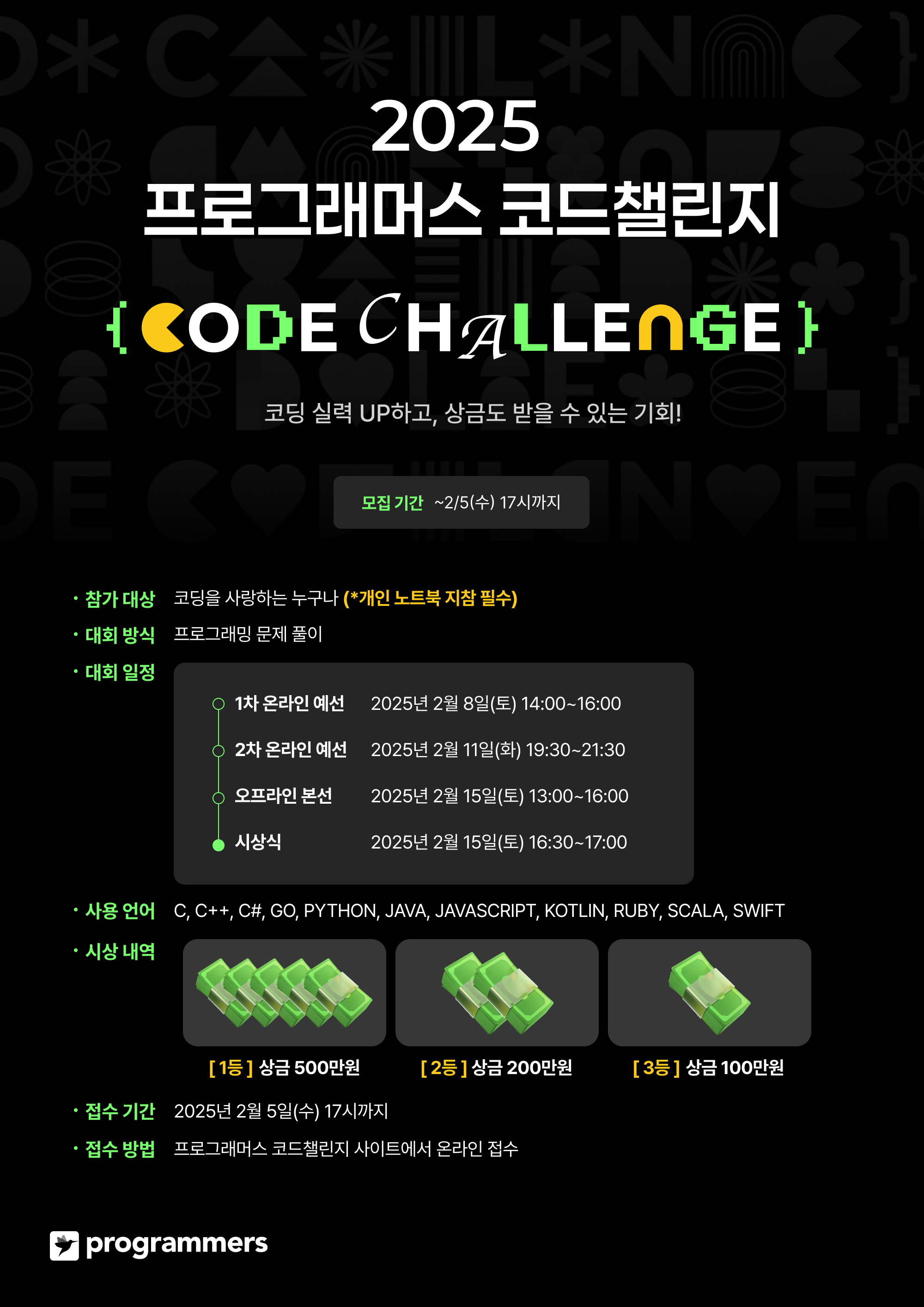 그렙, 내달 2025 프로그래머스 코드 챌린지 개최
