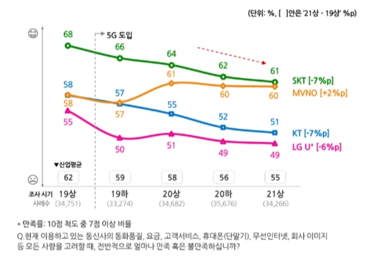 '무늬만 5G' 논란 계속?…통신3사 5G 고객만족도, 알뜰폰에 덜미