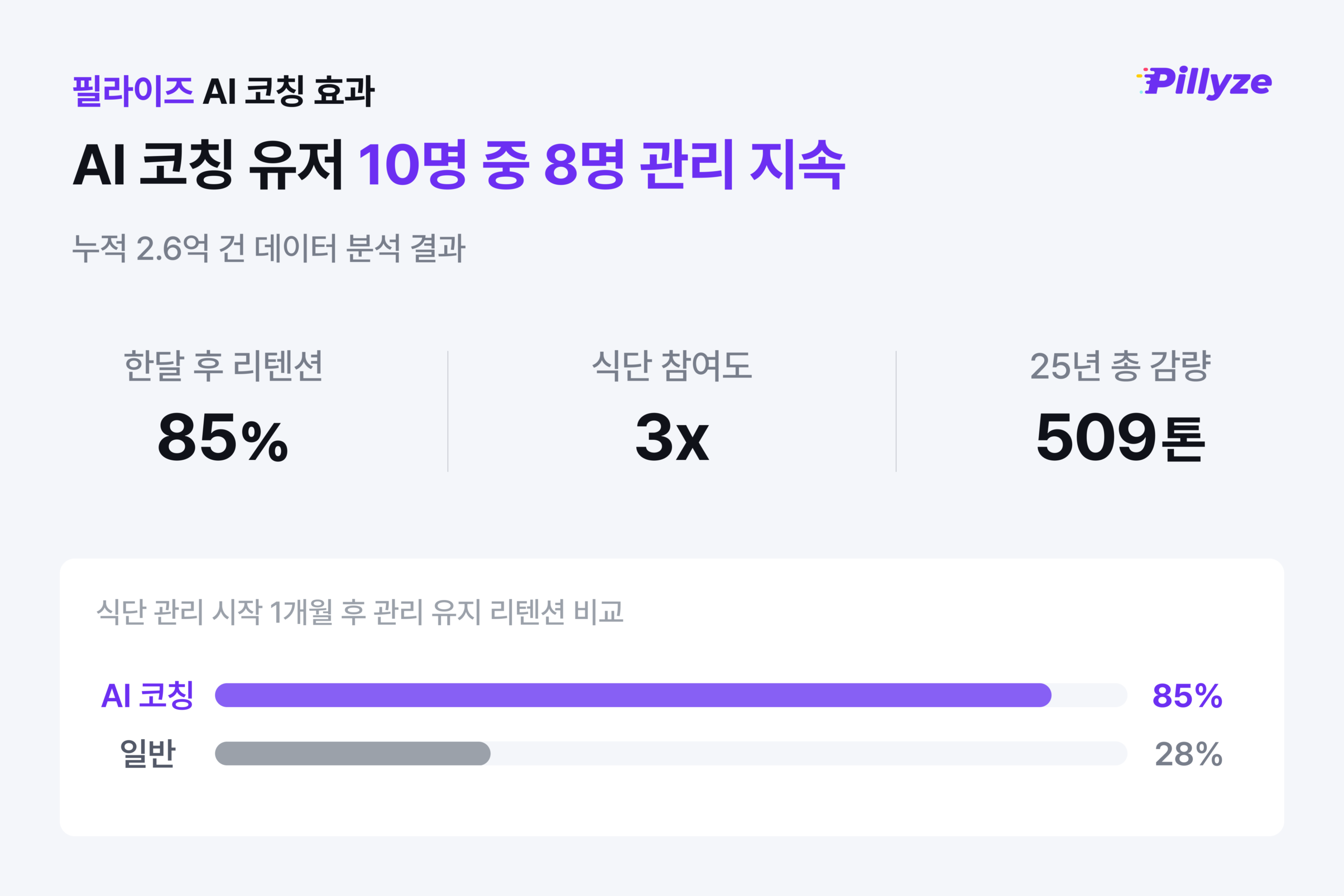분석에 따르면 AI 코칭을 활용한 유료 멤버십 이용자의 85% 이상이 한 달 후에도 체중 관리를 이어가는 것으로 나타났다.