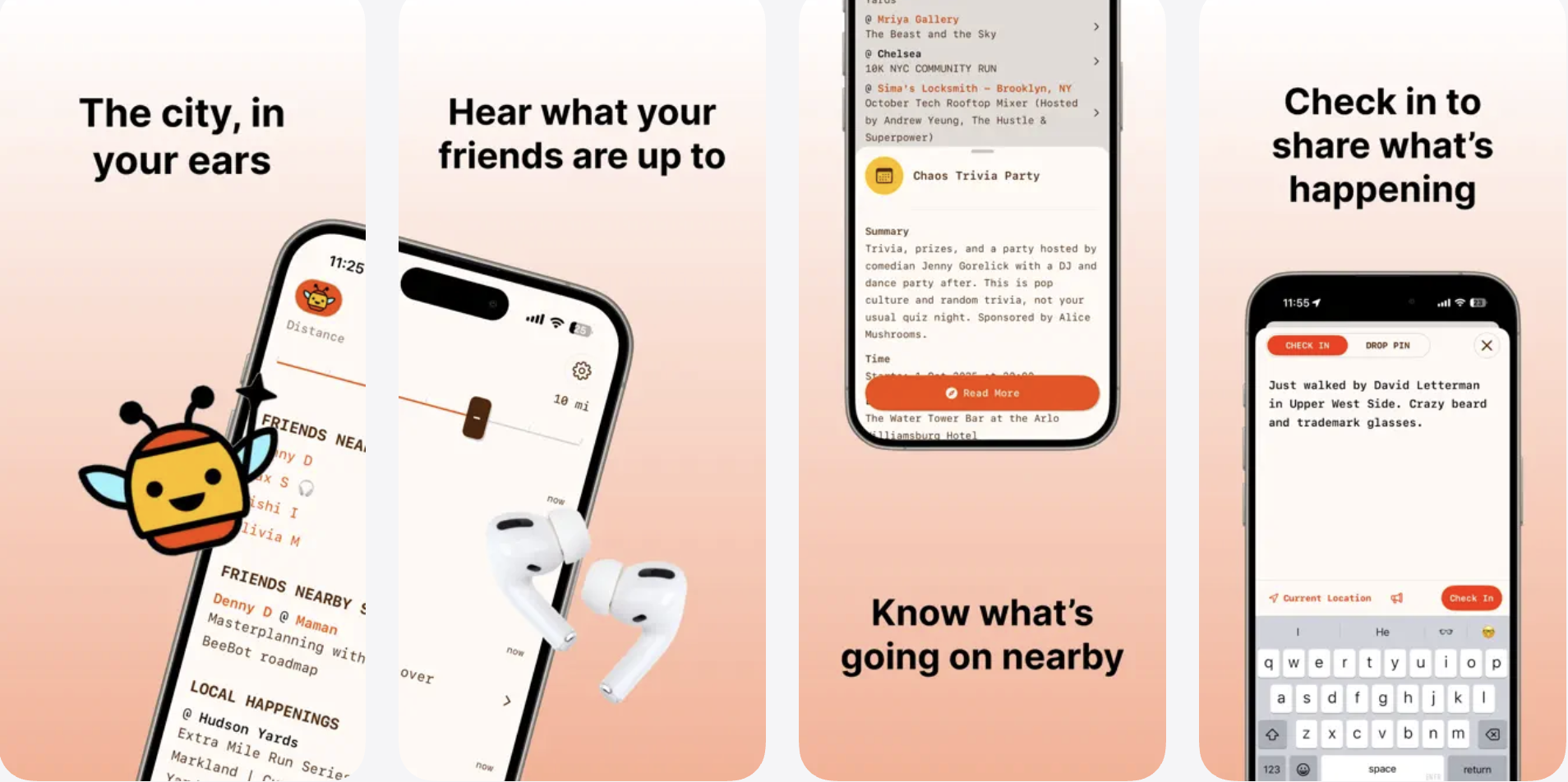 포스퀘어 공동창업자 데니스 크롤리가 AI 기반 '비봇' 앱을 공개했습니다. 헤드폰을 착용하면 자동으로 활성화돼 주변 사람, 장소, 이벤트를 음성으로 알려주는 'AI DJ' 앱입니다. 틱톡 스타일 알고리즘으로 실제 주변에서 일어나는 일에 초점을 맞춥니다. 현재 미국 내 iOS 베타 버전 출시.