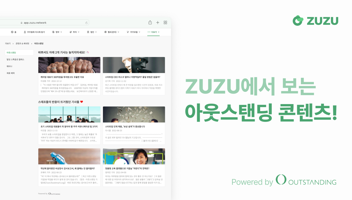ZUZU, 아웃스탠딩과 손잡고 스타트업 콘텐츠 제공