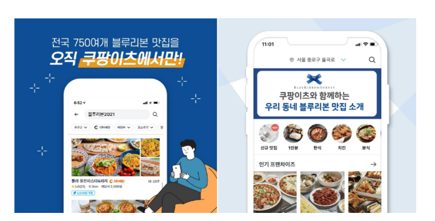 또한 쿠팡이츠는 맛있는 음식에 진심이라는 배민보다 더 나아간 모습을 보이기도 하는데요. 가장 대표적인 액션이 국내 최초 맛집 가이드 북인 블루리본 서베이와 제휴하여 쿠팡이츠 내에서 맛집 배달 주문이 가능하도록 구현한 것입니다. 이러한 것들은 단지 빠른 배달 속도 때문이 아닐지라도, 쿠팡이츠를 사용해야 할 이유를 제시해줍니다. 최근에는 이츠에만 있는 맛집을 표방한 "이츠 오리지널" 배지를 UI적으로 노출되도록 리뉴얼하며, 고객들은 물론, 가게들의 이탈까지 동시에 막으려고 하고 있습니다.
